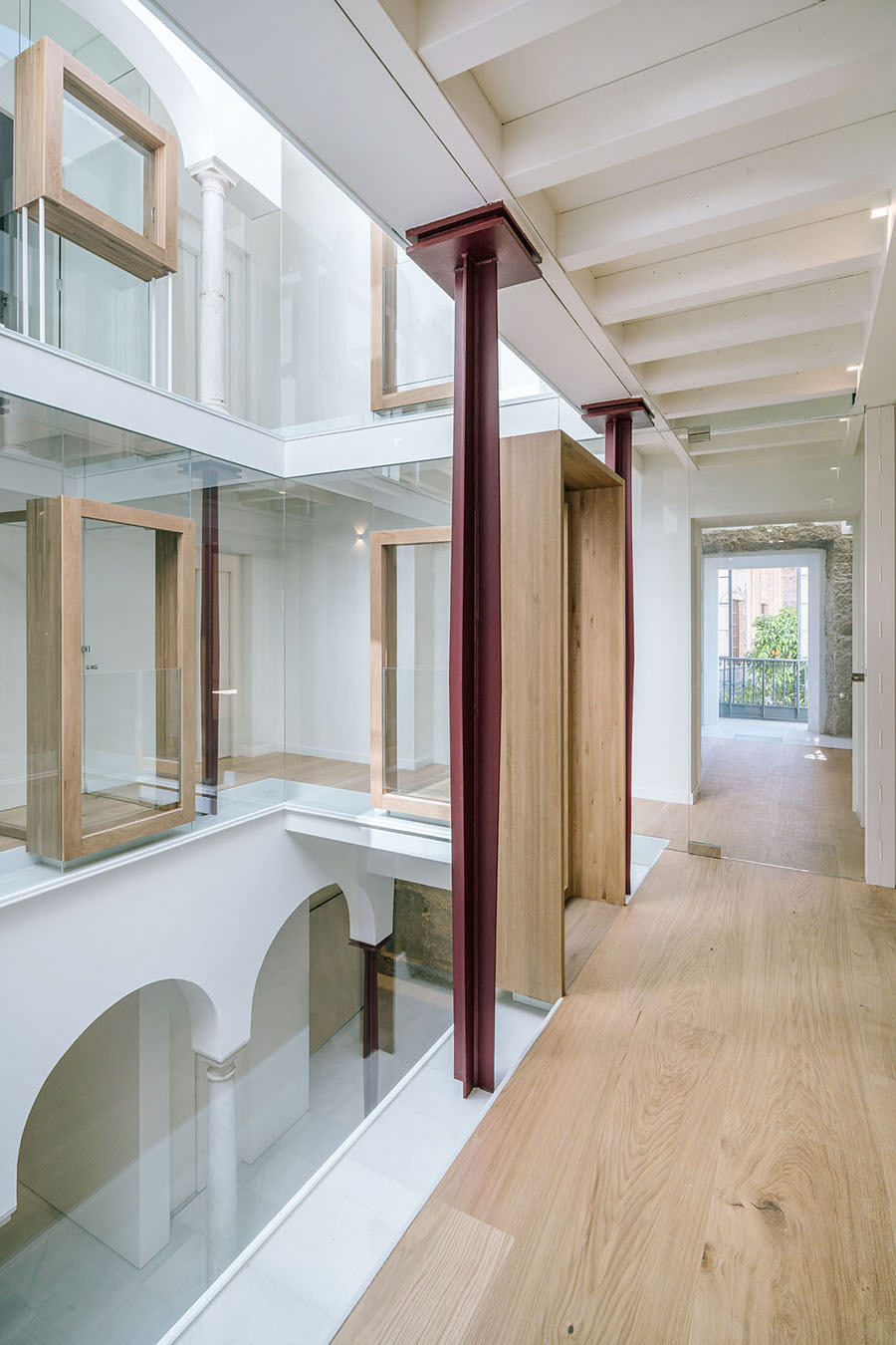 Against this background we have not privileged any moment over another. We have tried just to add value to a long evolutionary process. Central patio is the architectural element that best shows the traces of time evolution. Stone pillars alternate with load bearing walls, openings of different sizes and shapes show the expansions realized, as well as the traces of the perimeter galleries.