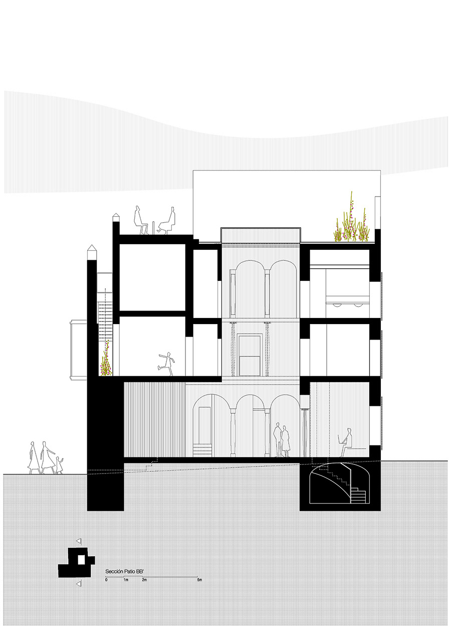 The patio acts as a valve of climate and life. Everything happens around it. A "montera" closes its upper level in order to allow its opening and closure according to exterior and interior climate conditions. The galleries are the soul of the house where relationships are enhanced and arise not only horizontally but also vertically and diagonally.