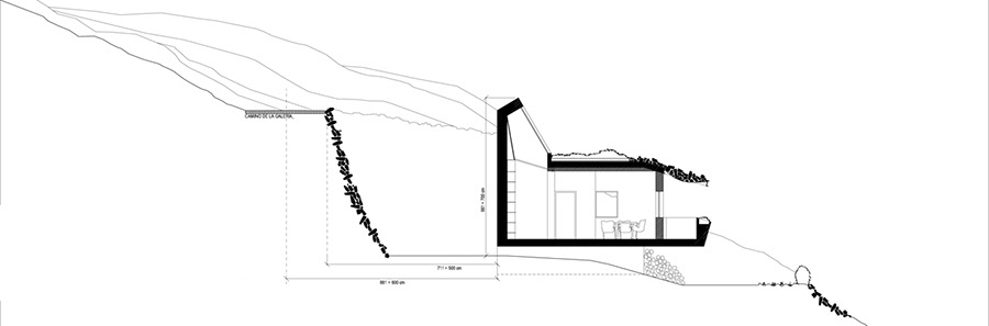 In order to reduce the visual impact as much as possible the dwelling will be placed next to the existing natural slope and with a height similar to this.