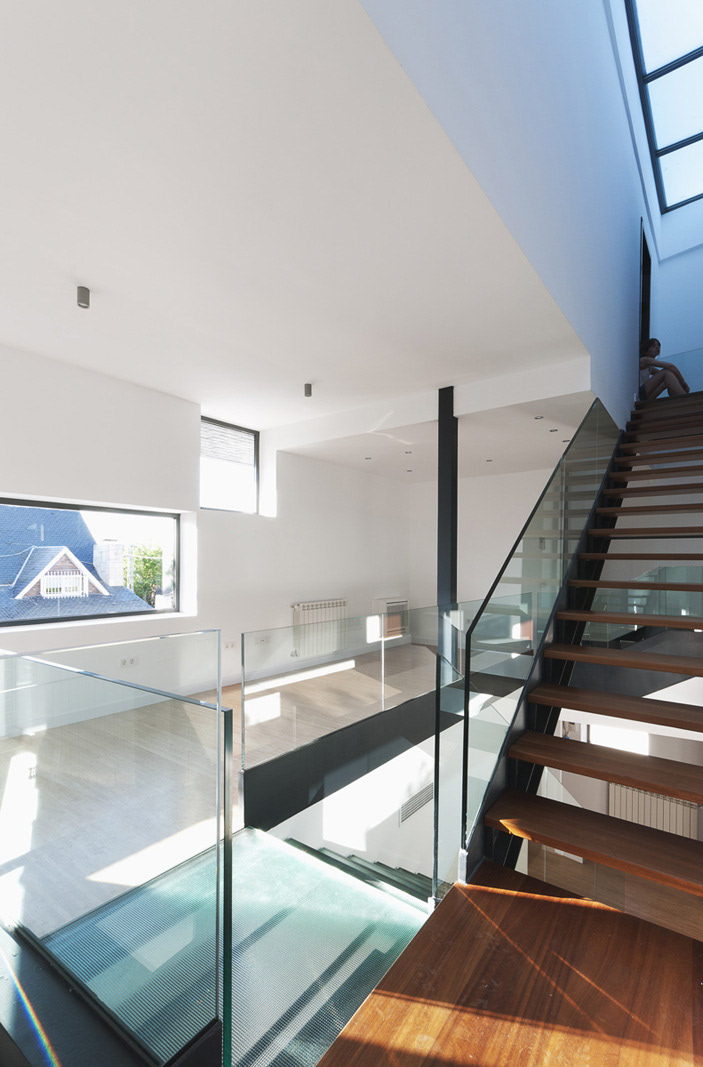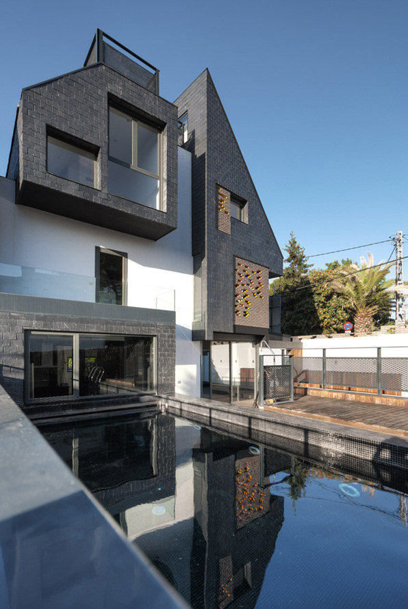 Instead of the options of clearly delimiting the building into two volumes that correspond to two houses or making them into a single volume, we propose a combination of volumes, fragments of small houses, which create an architecture without scale. Each volume is built with one material only, on the exterior as well as the interior of the houses.