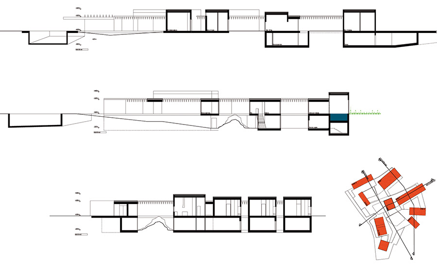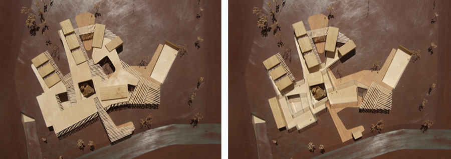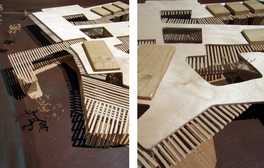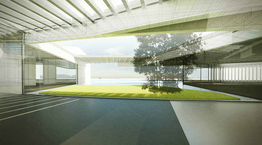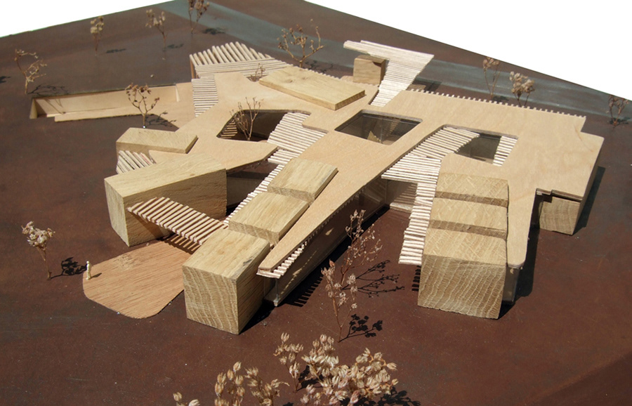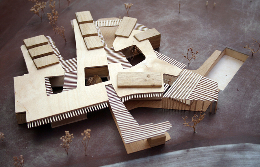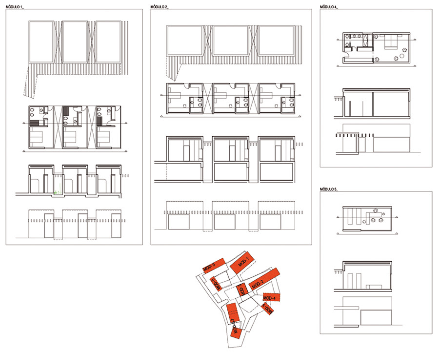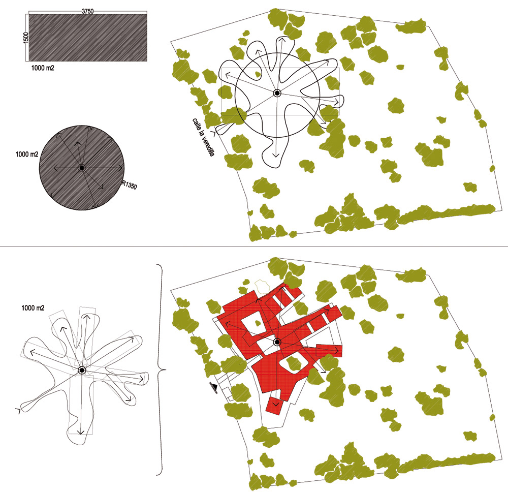 The building acquire an asteroidea shape, because of its dimension and because of the vegetation of the land. We optimise the circulations in a radial scheme, and at the same time, we can respect all the existing vegetation.