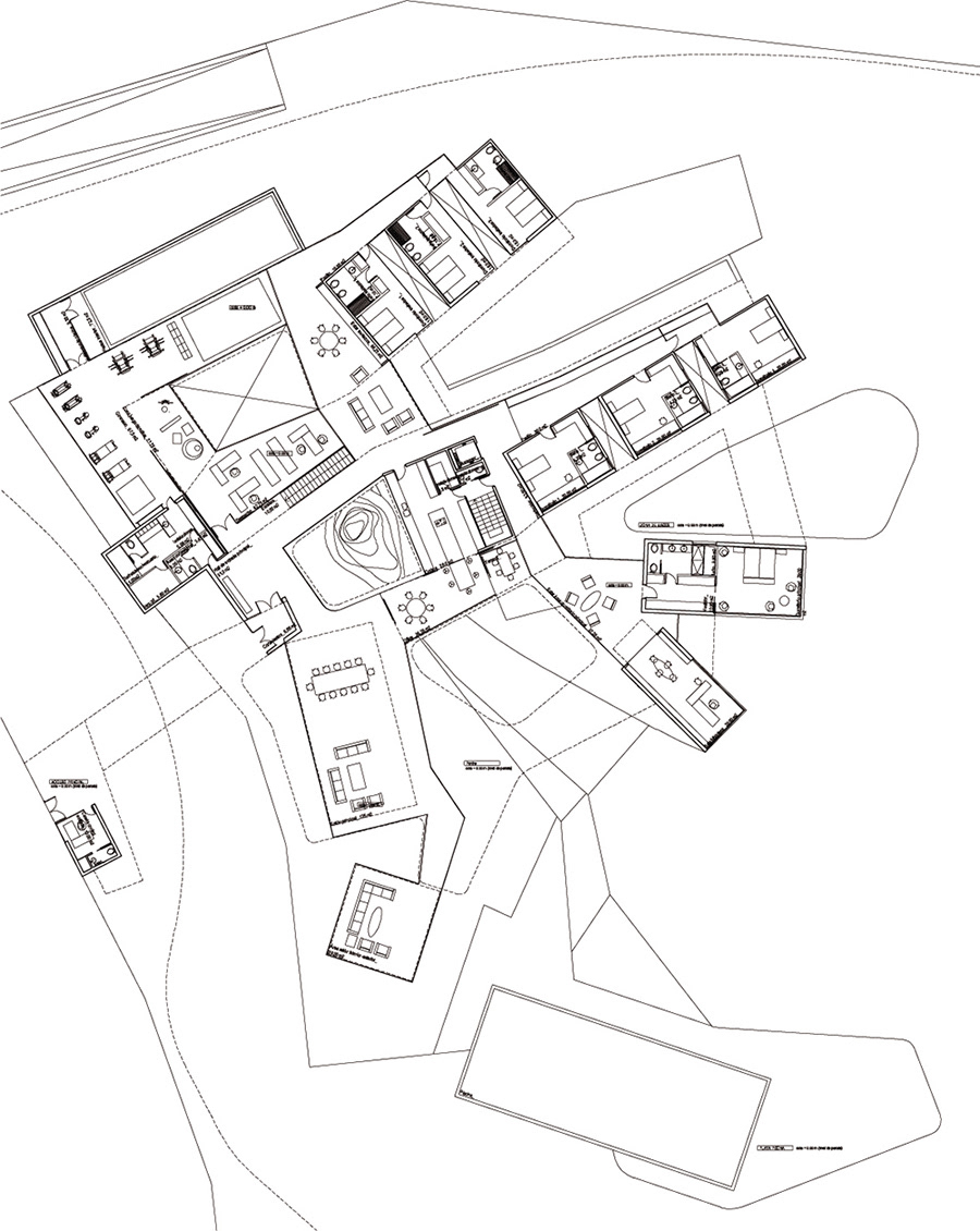 The “ASTEROIDEA” hotel is a construction without limits. It is a double movement between the extension of nature and the compresion of the architecture.