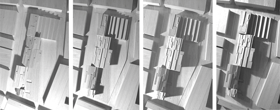 The building deforms the original bay to generate different spaces which are shady or sunny.