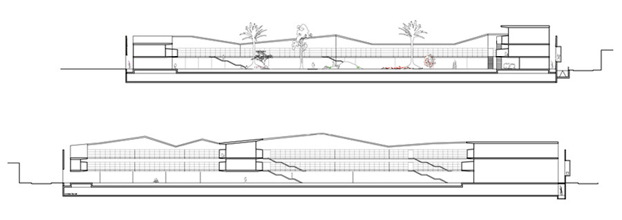 A wall adapted to the geometric conditions of the surroundings. But itis not just a wall, it is an equipped space: a double façade with a layer of vegetation in its interior.