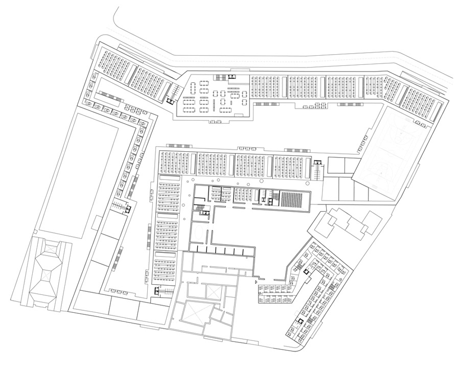 Urban emptiness. We propose building around the present site limits, soits interior remains free. A variable bay which is adapted to the urban surrounding area and the program. Building the border to free the interior. And thus, making the urban emptiness into a public space related to the Faculty of Education.