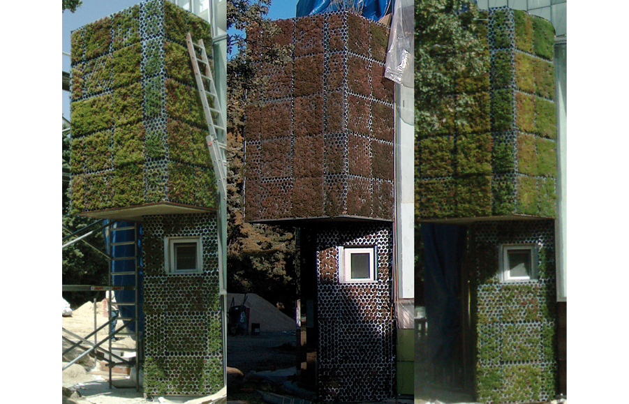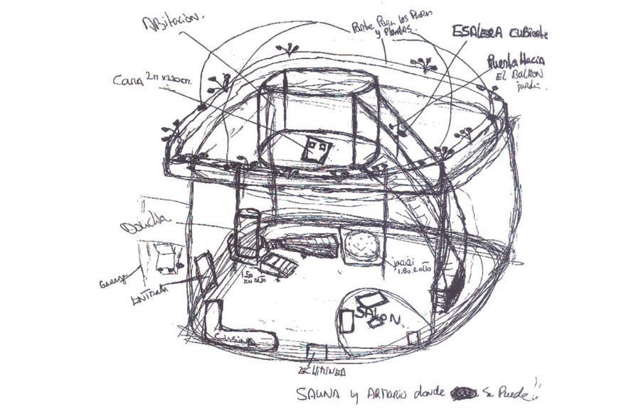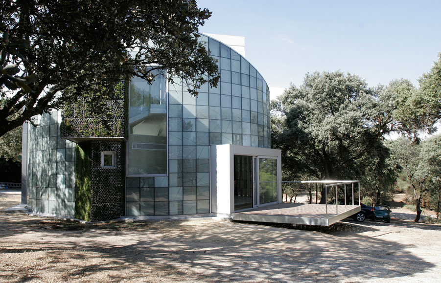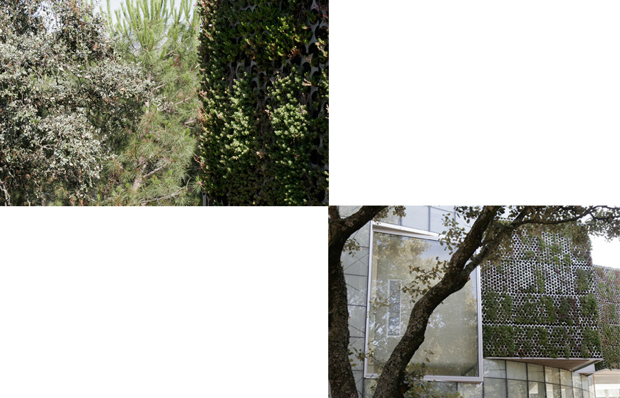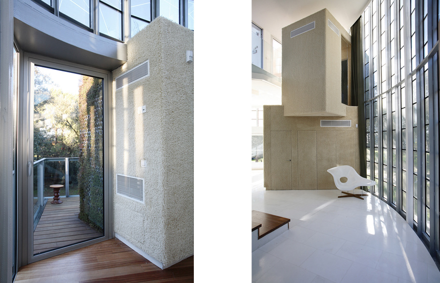Hairy boxes enclose his or her most intimate part. They come out onto the façade, dripping with vegetation and bringing the wood into the house.